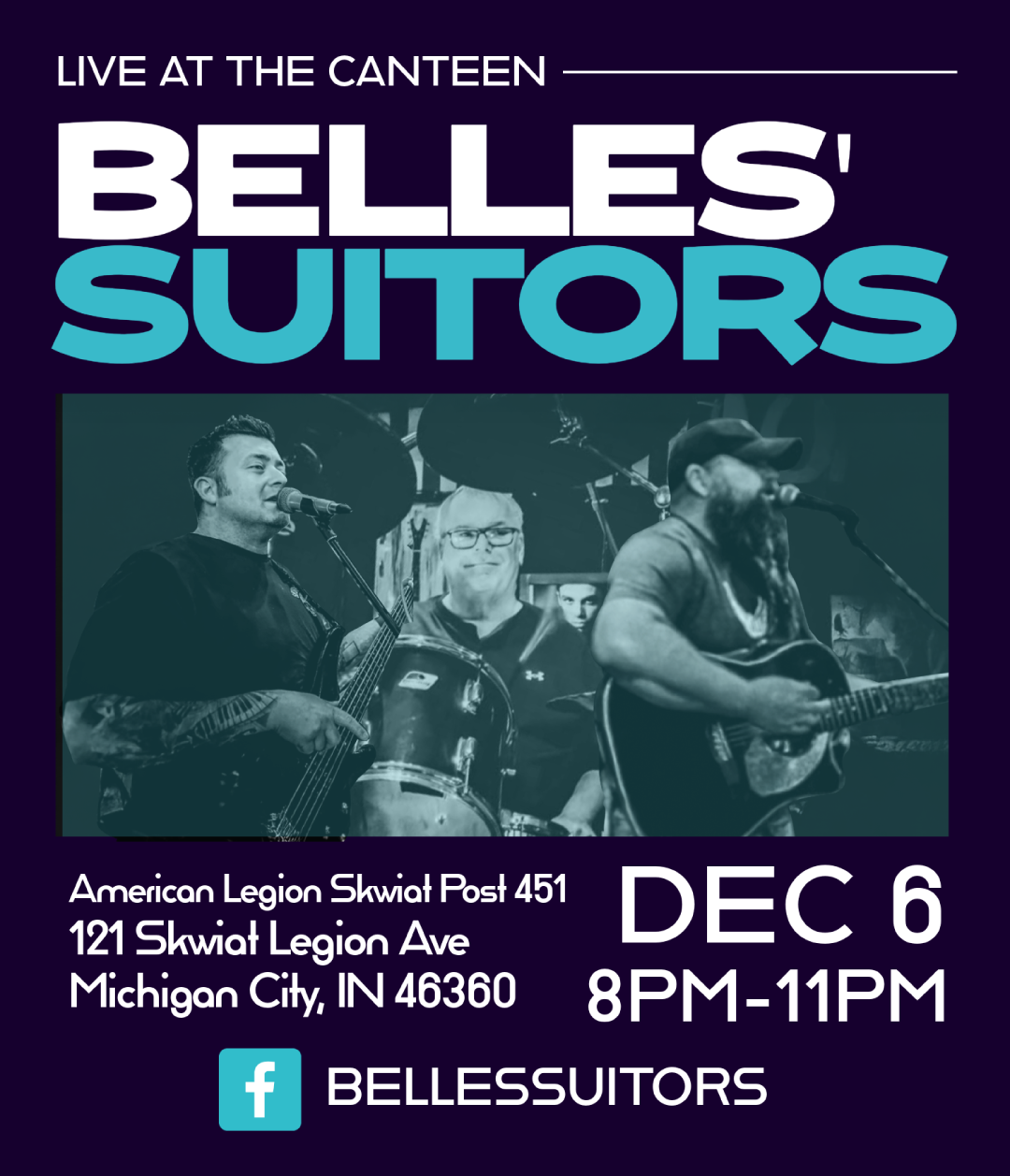 Belles' SuitorsSaturday December 6, 2025 8pm - 11pm Live at The CanteenAmerican LegionSkwiat Post 451